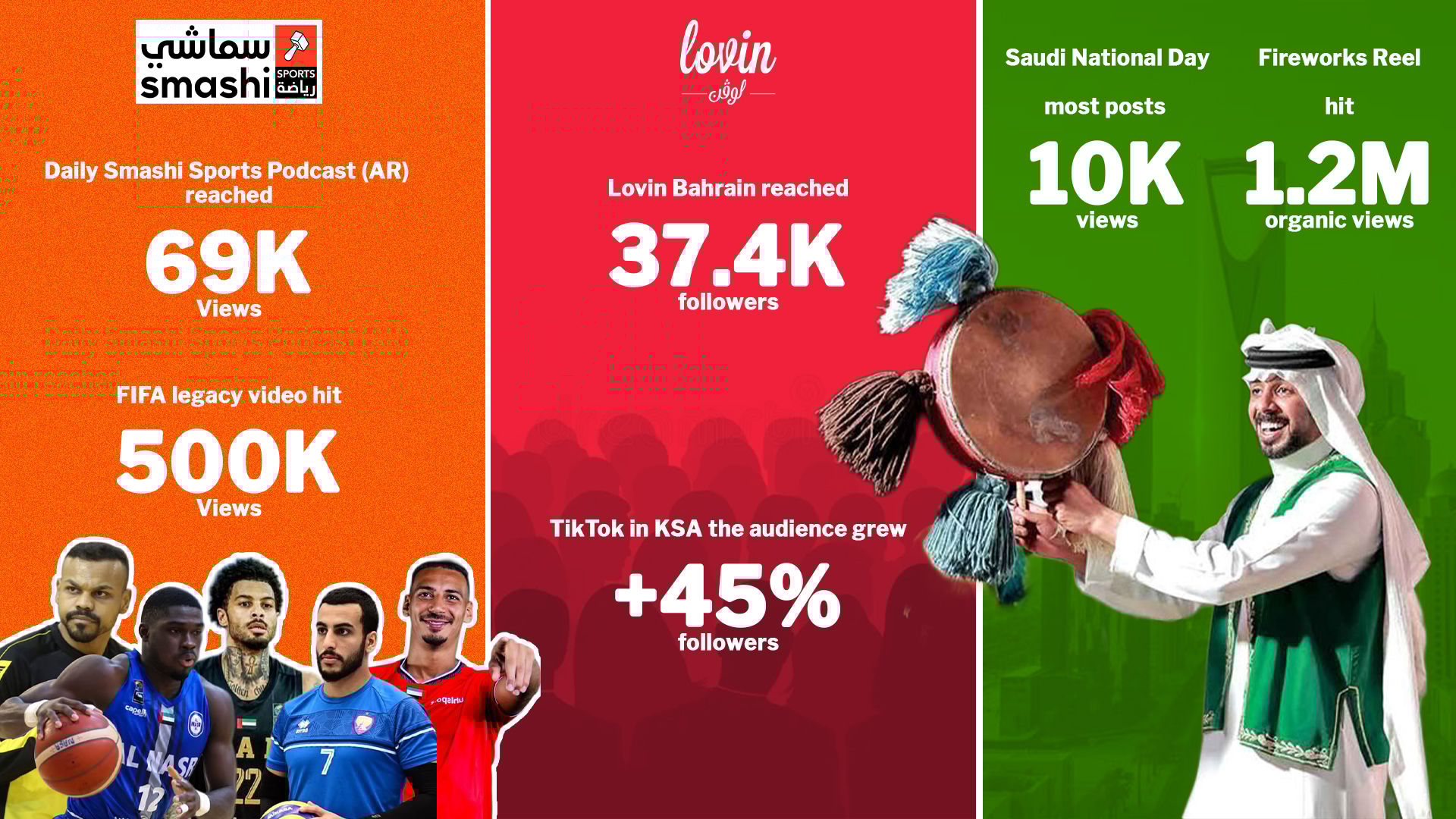 This celebration became one of our strongest cultural moments of the year, showing the power of community-driven storytelling. Regionally, Lovin Bahrain hit 37,404 followers and 2M+ impressions, while on TikTok in KSA the audience grew +45% MoM and followers doubled to 40K+. We also launched the daily Smashi Sports Podcast (Arabic), reaching 69K views. On Twitter/X, engagement spiked +60% thanks to real-time sports coverage.